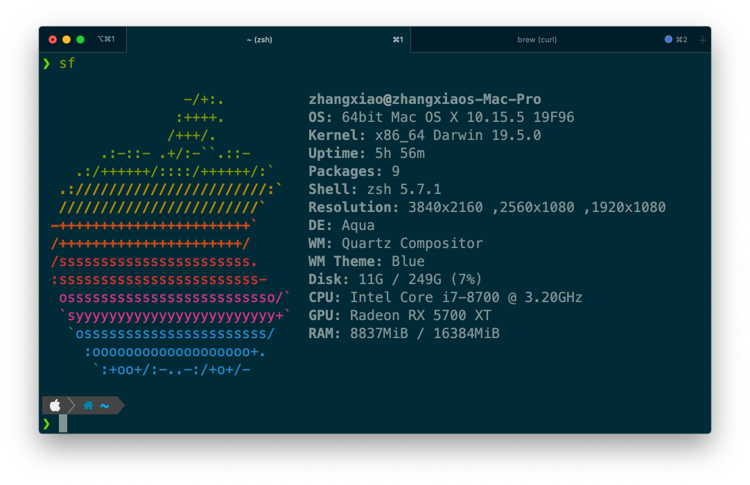Leave a Comment每次重装系统都要找相同的资料,而且最近重装次数出奇的多,本着程序员不做重复工作的思想,肯定是要记录下的 首先肯定是安装一个iTerm了: https://www.iterm2.com/ 接下来搞一个zsh(Oh-My-Zsh) https://github.com/ohmyzsh/ohmyzsh/wiki/Installing-ZSH 没有brew需要安装一个brew https://brew.sh/ 安装会碰到SS…